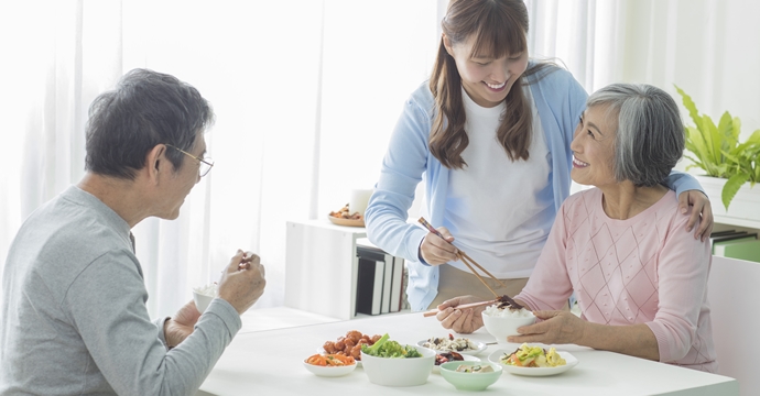 用餐時,阿公阿嬤或爸媽常嗆到,或覺得喉嚨有異物而不想進食,別以為是正常老化現象而不在意,兒孫輩應保持警覺,早日透過醫療團隊的協助,進行吞嚥飲食訓練,可讓長輩找回飲食快樂,避免陷入吞嚥障礙的困境
