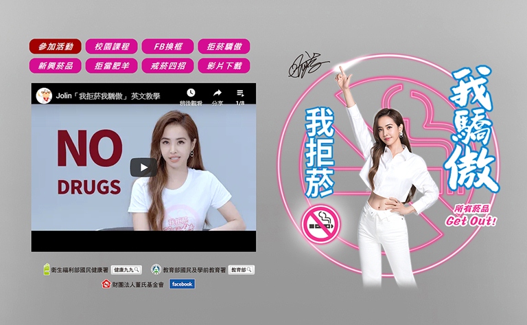 時尚天后蔡依林再出招,邀請師生12月底前上「我拒菸,我驕傲」網站,參加班級創意表態,運用校園內「我拒菸,我驕傲」布條、立牌、海報等文宣,上傳「大合照」或「短片」,就有機會爭取由「和碩集團」提供的班級獎學金,共45個班級名額!