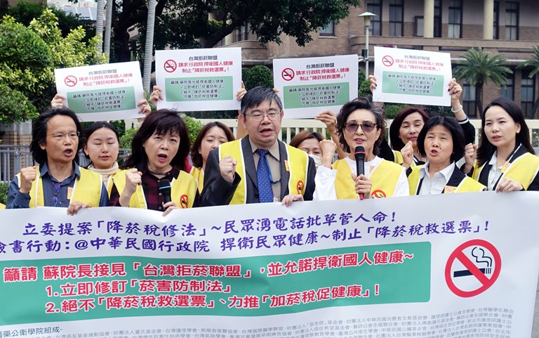 去年底,媒體揭露基層民代不斷向蔡英文總統建議降菸稅救選票,總統電請某菸酒公司研擬推平價菸品,且該菸酒公司坦承「已推65元的平價菸」。原以為「降菸稅可以救選票」的訴求在一陣喧鬧後就會停止,沒想到今天卻驚傳立委正式提案「修法降菸稅」!