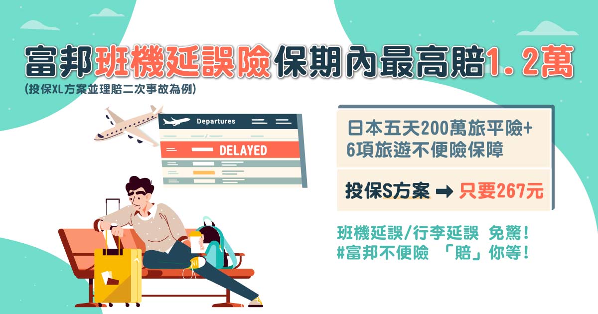 富邦產險「海外旅平險+不便險」網路投保5方案 班機、行李延誤都有賠