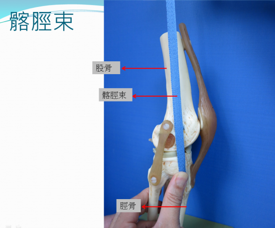跑者膝是許多馬拉松選手都會遇到的煩惱。葉文凌醫師解釋,髂脛束連接大腿股骨和小腿脛骨(如圖),從大腿外側一直延伸到小腿接近膝蓋處。在髂脛束與大腿股骨交接處,有一個滑膜,滑膜裡的水,可緩衝髂脛束與大腿股骨的摩擦,但跑全馬、半馬時,髂脛束和股骨下端突出處一直摩擦,造成髂脛束與股骨間的滑膜炎,導致許多人跑步後膝蓋疼痛。