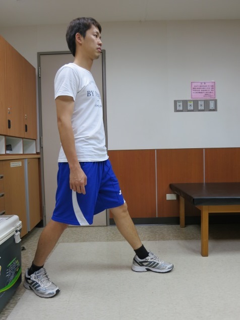 - 左腳往前,右腳往後,做弓箭步的動作,停留15〜30秒,再換邊進行。