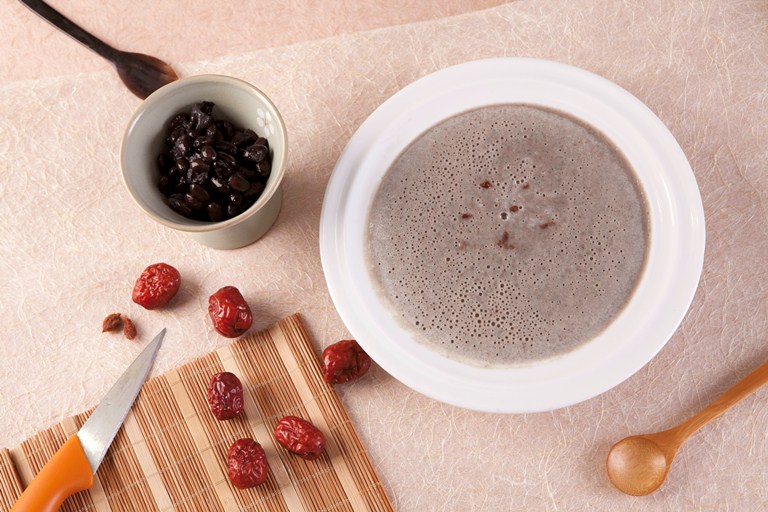 材 料:蒸熟黑豆200g、糙米飯50g、去籽紅棗8顆(約25g)、熱開水600c.c.