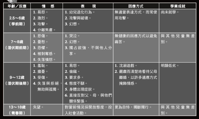 文綺晚上在辦公室加班,突然接到小五兒子導師的來電,「宥凱最近脾氣很差、常和同學吵架,功課也不寫,似乎大人的離婚令他很受傷……」文綺聽了很錯愕,乖巧內向的兒子怎會一夕變了樣,離婚的影響真有這麼深?