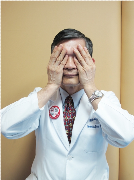 雙手十指併攏,互搓生熱,再來搓臉,分別由太陽穴集中至口鼻處,上下搓動,到臉部發熱,用食、中、無名三指之指腹,輕輕畫圓圈來按摩眼球。亦可洗完手後,以水來搓洗臉部,再用紙巾擦乾。電腦族眼睛直盯螢幕,可順勢輕按眼睛以舒緩。