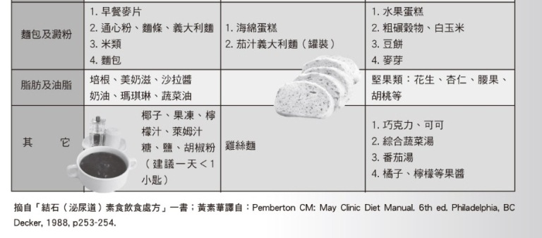 謝德生特別強調,一般人聽到結石,第一個反應是「豆腐不能吃,其實這不正確,」因為它的含鈣成分並不高。台大醫院營養部組長黃素華說明,以往認為鈣是結石的主要成分,以為減少飲食中的鈣質,就可降低腎結石的發生,但事實並非如此。近幾年研究發現,攝取足量鈣質反而能抑制含鈣結石的產生;而低鈣飲食,還會刺激身體從骨頭釋放更多鈣質,促進草酸吸收,造成尿液中草酸濃度上升,更易形成草酸鈣結石。