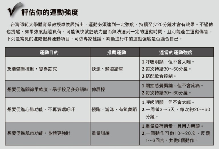以下就跟著專家建議,評估自己需要的運動強度吧!