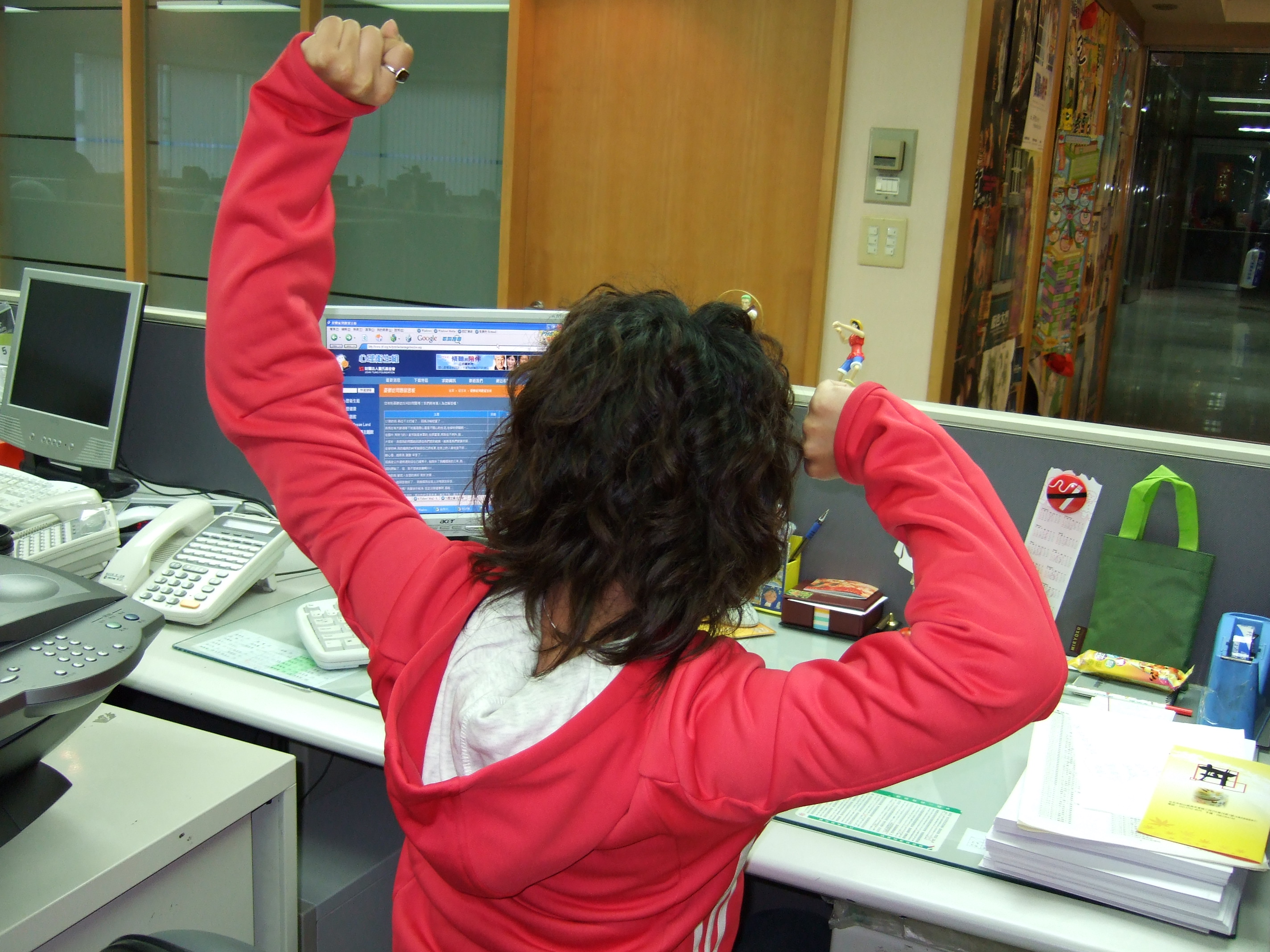 後來某次老闆請客慰勞該組記者,主管透過同組的一位大姐告訴她,由於報社老闆很重視員工穿著,所以才會如此規定,從此她不再白目,遇到有老闆出席的場合,還刻意打扮一番,替上司掙點面子。