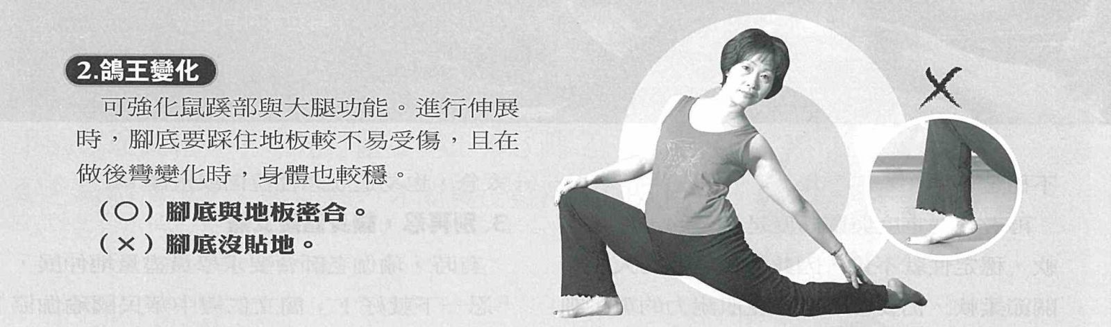 可強化鼠蹊部與大腿功能。進行伸展時,腳底要踩住地板較不易受傷,且在做後彎變化時,身體也較穩。