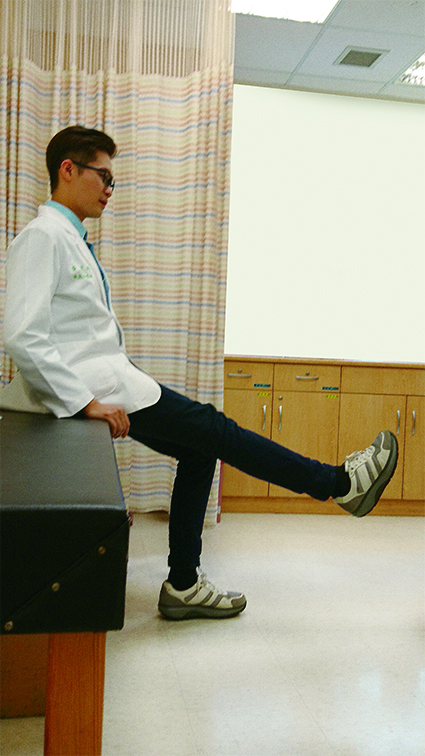 動作5:「坐姿抬腿」停30秒~1分鐘,左右腳各做1次。