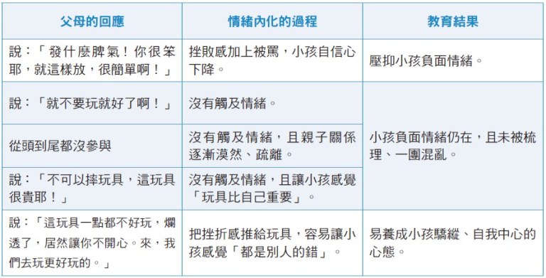 所以情緒教育是在潛移默化之中發生的,特別是在挫折發生時,家長的處理態度,對孩子的情緒模式有著重要的形塑力。
