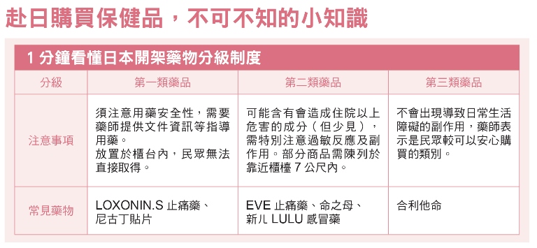 廖偉呈藥師補充,常遇到民眾因為他人推薦購買日本藥品,但臺灣人跟日本人飲食習慣不同,過敏體質也不同,例如臺灣人對EVE止痛藥所含的布洛芬成分過敏比例偏高,所以千萬要小心,不要因為他人使用有效,就自行服用,先諮詢藥師,找到適合自己的產品才是最重要的。