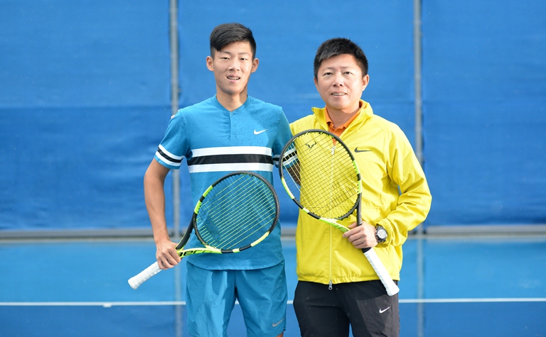 對曾俊欣(左)來說,曾育德(右)是嚴師也是慈父。為了訓練兒子,曾育德特地去考網球教練執照,並開著車到各處的網球訓練場觀摩,積極尋找適合兒子的訓練方式。