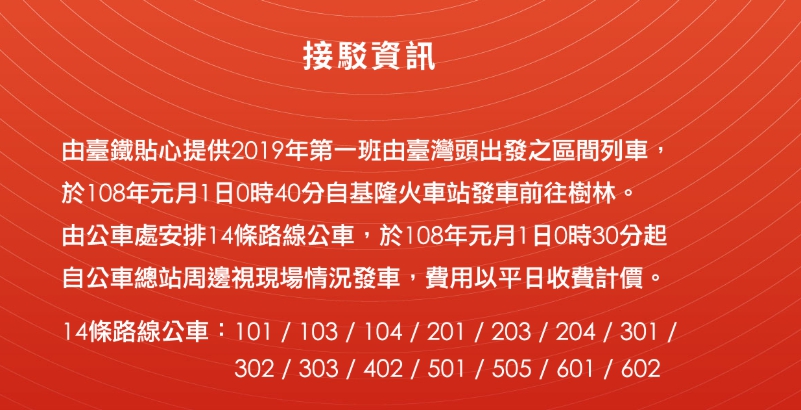 網路轉播:12/31 19:00-1/1 01:00活動官網、Youtube、臉書粉專