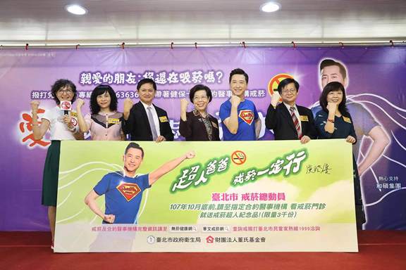 哈林再接再厲,在童子賢董事長的支持下,父親節當天化身為戒菸超人。