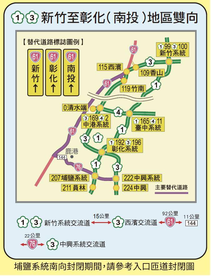 提醒你2/28、3/1的凌晨0:00~24:00,會封閉國道1號平鎮系統南下入口及埔鹽系統南下入口,而3/2、3/3的凌晨0:00~24:00,會封閉國道1號虎尾及埔鹽系統北上入口及國3號竹南北上入口,建議從別的入口上高速公路喔。