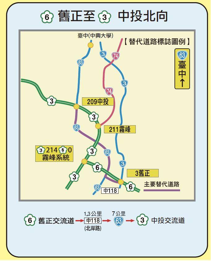 另南投、霧峰地區欲前往台中市區之民眾,則可行駛台63替代道路,省時又省荷包,一舉兩得唷