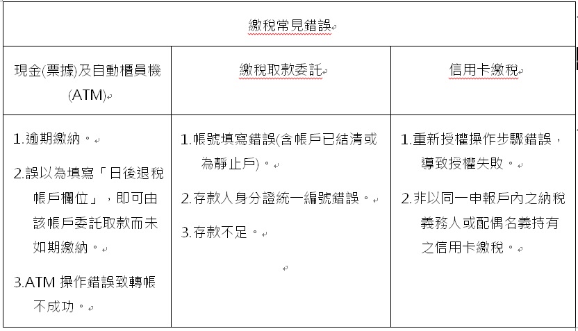 以以上方式繳稅時,要小心以下錯誤,以免遲繳稅金被追繳稅款並加計滯納金及利息。