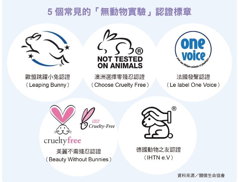 關懷生命協會專案研究員汪盈利表示,許多動物實驗都會透過兔子來執行,因為兔子有大面積的皮膚,眼睛也較老鼠大,易於觀察實驗結果,加上沒有眼淚,當化學試劑滴進兔子眼睛時,比較不會影響檢測濃度,這也是為何大部分的無動物實驗認證標章都會用兔子作為一部分的圖樣。