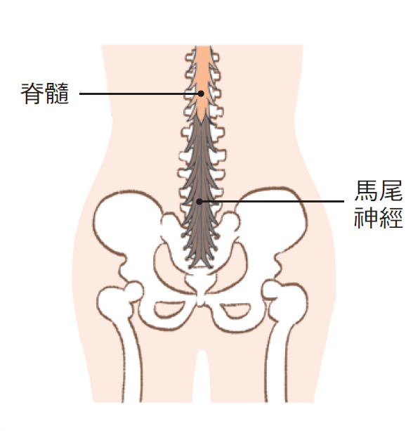 腰椎在第二節以下是沒有脊髓的,只有一條條的神經根,狀似「馬尾」的脊椎神經根叢,一旦此部位的神經根叢受壓而出現大小便失禁、下肢無力等症狀,就叫做「馬尾症候群」。其成因通常是因腰椎椎間盤突出壓迫馬尾神經叢造成,其他原因還包括彎腰提取重物、外傷、腫瘤及開刀造成的後遺症等。