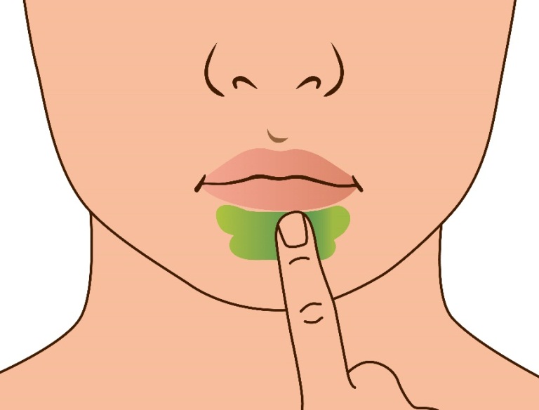 3.在下嘴唇下緣塗抹綠油精