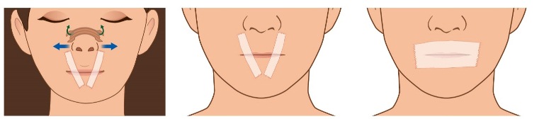 一開始貼嘴巴,可以用鼻翼貼來協助鼻道擴張,初期先嘗試用倒八字的方式貼嘴巴,讓還沒有習慣改用鼻子呼吸的孩子勉強可以用嘴巴呼吸,如果白天練習鼻呼吸習慣了,就可以不要用鼻翼貼,甚至將整個嘴巴貼緊,讓孩子慢慢養成用鼻子呼吸的好習慣。