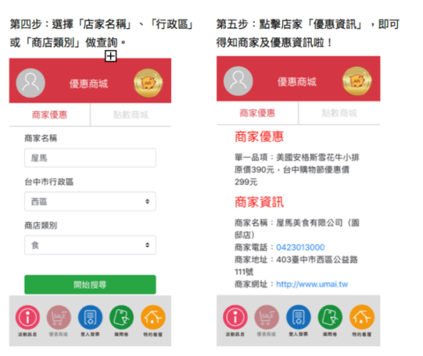第五步:點擊店家「優惠資訊」,即可得知商家及優惠資訊啦!