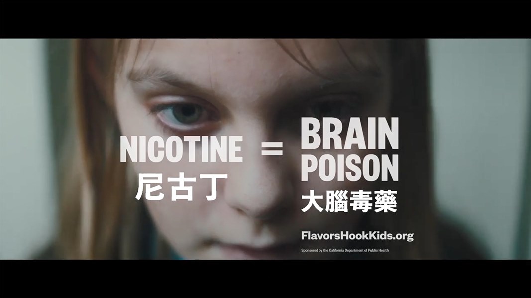 美國加州政府推出「電子煙=瘟疫」宣導影片。
