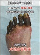 吸菸引發末梢血管疾病(2017年香港菸盒警示圖文,占正、反面各85%)。