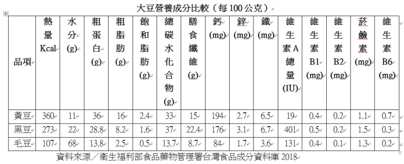 目前符合校園食品規範的豆奶可作為正餐的飲品搭配,或是補充營養的點心,於運動後喝豆奶還可以培養肌力,建議師長在運動會或是給予學生獎勵時,可以提供無糖豆奶、低糖豆奶等取代含糖飲料。豆奶的原料是大豆,具有豐富蛋白質、不飽和脂肪酸、卵磷脂、維生素B群等成分,是發育期孩童良好的營養來源,也是素食者的聖品。大豆因種子種皮的顏色不同,可分成黃色、黑色、綠色、茶色四種,尚未成熟的大豆其實就是毛豆,臺灣較常見的大豆是黃豆和黑豆,兩者成分含量略有差異。