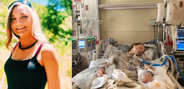 美國猶他州18歲少女尼爾森生病前以及在病榻上的照片。