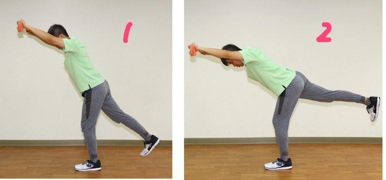 2. (進階版)增加腳向後抬起的高度,身體向前傾的角度增加。