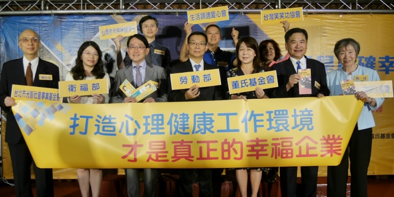 董氏基金會與台塑企業今日舉辦「不只是小確幸、給予大幸福」職場心理健康促進記者會,現場包括勞動部、衛福部、勞動福祉退休司、職安署、國健署等多位部會長官,也邀請心理衛生團體代表,包括中華心理衛生協會、台灣笑笑功協會、生活調適愛心會、台灣老年精神醫學會、台北市光智社會事業基金會等出席響應,呼籲大眾重視職場心理健康。