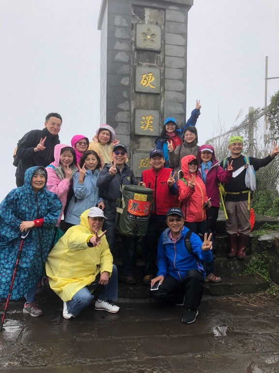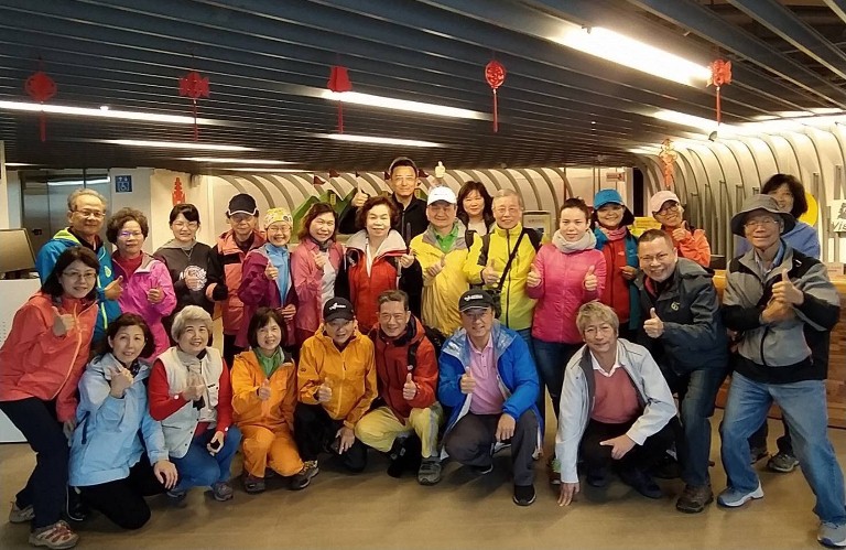 葉金川與山友們如常進行登山活動,在觀音山遊客服務中心集合合影,沒有口罩,只有笑容(攝影/謝永輝)。