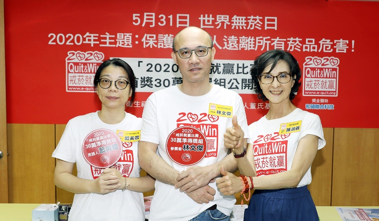 首獎30萬元得獎組是來自基隆的林文傑、藍美雪夫妻,參賽者林先生47歲、菸齡31年、曾經每天吸1包半的菸,從事裝潢工作;16歲就開始吸菸的林先生,身邊工作的夥伴都吸菸,過去也多次試著戒菸,但沒多久就破戒了。