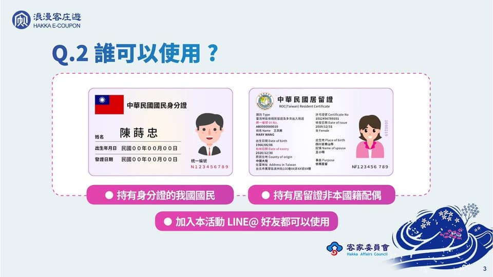 商店及民宿業者消費使用,店家查詢請至「客委會浪漫客庄遊」LINE官方帳號。