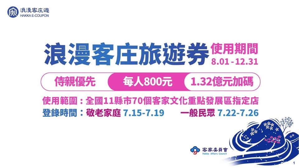 你以為只有三倍振興券可以領嗎?客委會推出的「369浪漫客庄產業振興方案」,其中「浪漫客庄遊」將發放28萬份800元電子旅遊券,鼓勵國人前往全台70個客家文化重點發展區的優良餐廳、民宿、商店等指定店消費,只要用手機登錄就可以登記抽籤。而本文特別為你整理出客庄旅遊券的領取及使用方式與70個客家文化重點發展區鄉鎮,讓你不用在暑假前往人擠人的觀光景點,也能享受一趟寧靜的客家文化之旅!