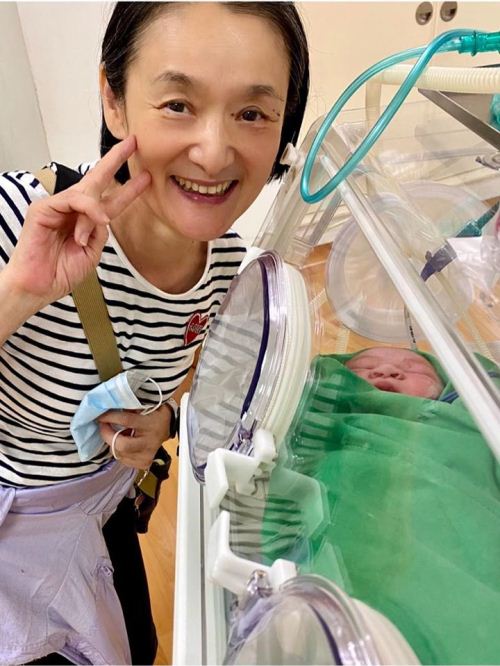 今年66歲的譚艾珍和外孫合照,開心當阿嬤!(圖片來源/臉書《歐陽靖・裏東京生存記》粉絲團)
