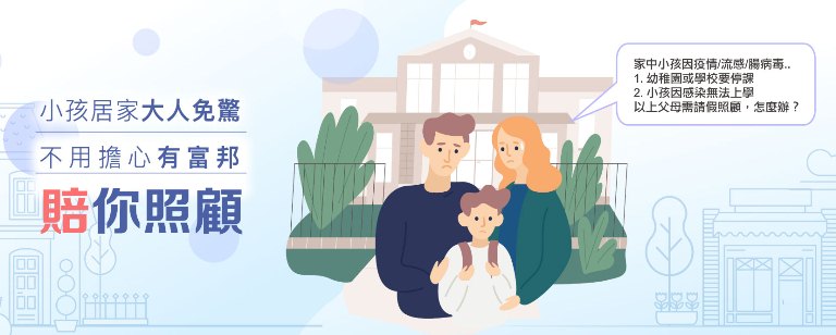 由富邦產險官網推出的「小孩照顧險」包含「居家照顧補償」保險與「個人賠償責任」保險,承保對象為家中有未滿15足歲子女的父母。「居家照顧補償保險」提供父母在小孩罹患腸病毒感染、流行性感冒(A、B、C、D型)、肺炎、登革熱,或教育機構因傳染病停課而需要請假在家照顧小孩時的居家照顧費用,保期內每人定額賠付以兩次為上限。「個人賠償責任保險」則可保障小孩在學校玩耍誤傷同學、帶寵物出門咬傷他人的賠償責任。