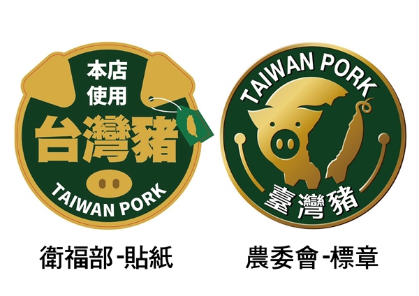 ▲衛福部提供的台灣豬貼紙、農委會的台灣豬證明標章。