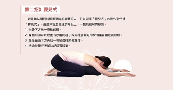 現代人工作、生活節奏緊湊,用餐時為了趕時間難免有吃太快、吃太多的情形,引發脹氣和腸胃不適的狀況。此時若手邊沒有消脹氣的藥物,不妨試試簡單的瑜珈動作幫助消除不適感!