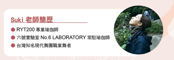 Suki老師希望大家能透過簡單的瑜伽動作來改善因久坐缺少運動而造成的脹氣,或生活步調過快導致的焦慮情緒,以及間接產生消化不良等狀況。