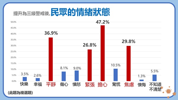 不過,雖然居家防疫生活有所不便,仍有些正向的回饋。51.2%受訪者表示,與親朋好友透過線上或電話等互動的頻率「有增加」;同時在這時期,「個人應用時間增加」、「與家人/親友相處」及「網路資訊或影音分享」均讓其感受到正向的經驗。