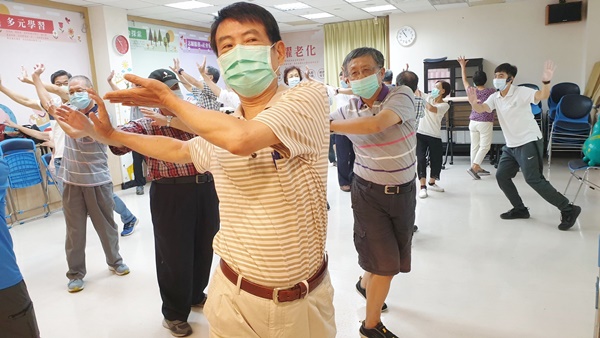 ▲學員邁力做出故宮國寶動動操中,模仿戰國中期〈玉龍佩〉的回首動作。(攝影/黃琇淩)