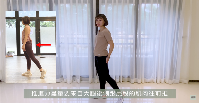 2.運用大腿後側及臀部肌肉往前推進