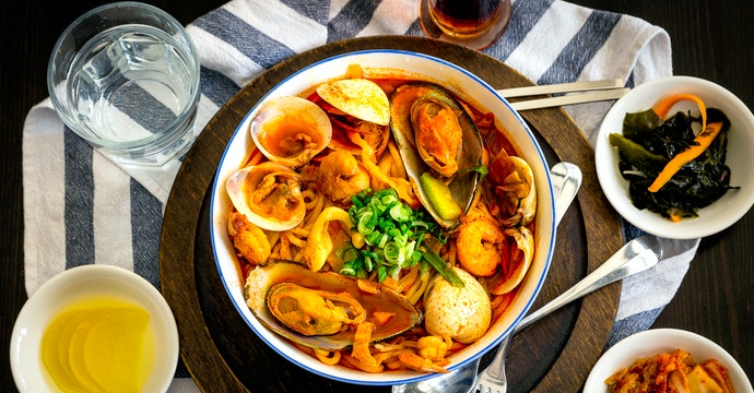 3.湯鍋放水,加入韓式泡菜及醬汁煮滾,放入蔬菜煮熟,再放上肉片燙熟,盛入湯碗後食用。(延伸閱讀:深海魚、燕麥、大豆蛋白等5大護心好食物,怎麼聰明吃)