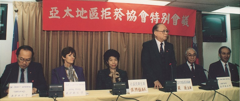 「亞太拒菸協會(APACT)」是由董氏基金會創辦人嚴道董事長於1989年發起,當時美籍國際公共衛生專家陳紫郎教授協力奔走,成功邀集美國、韓國、日本、泰國、菲律賓、香港等地反菸領袖在臺北成立。