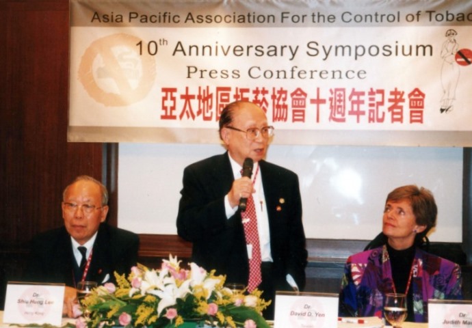 圖/1999年,在APACT10周年時,董氏基金會嚴道董事長重申亞太各國團結一致對抗跨國菸草公司的決心。