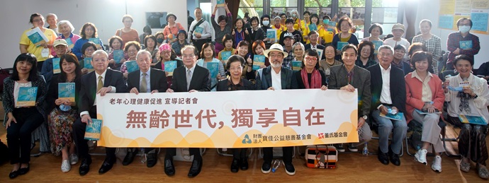 董氏基金會與寶佳公益慈善基金會合作老年心理健康促進宣導計畫,特別邀請國民阿嬤譚艾珍與飛躍羚羊紀政、時尚老人林經甫、整形教母林靜芸、小李飛刀衛子雲、不老頑童王小棣、退休老總江育誠、生活實踐家丁菱娟,以及品味私塾創辦人王文靜,拍攝全新系列短片「樂齡夢x享實踐」,及「獨享的快樂」音樂短片,並發表《給照顧憂鬱和失智長者的你》書籍,今(16)日舉辦記者會,呼籲民眾為中高齡生活做好準備,學習自我身心照護,樂享獨處而自在。