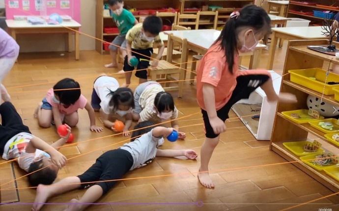 1.利用幾張椅子或小桌子綁上塑膠繩,模擬電影裡的紅外線感應器,讓小孩想辦法透過跨越、匍匐前進等動作穿過,卻不碰到繩子。